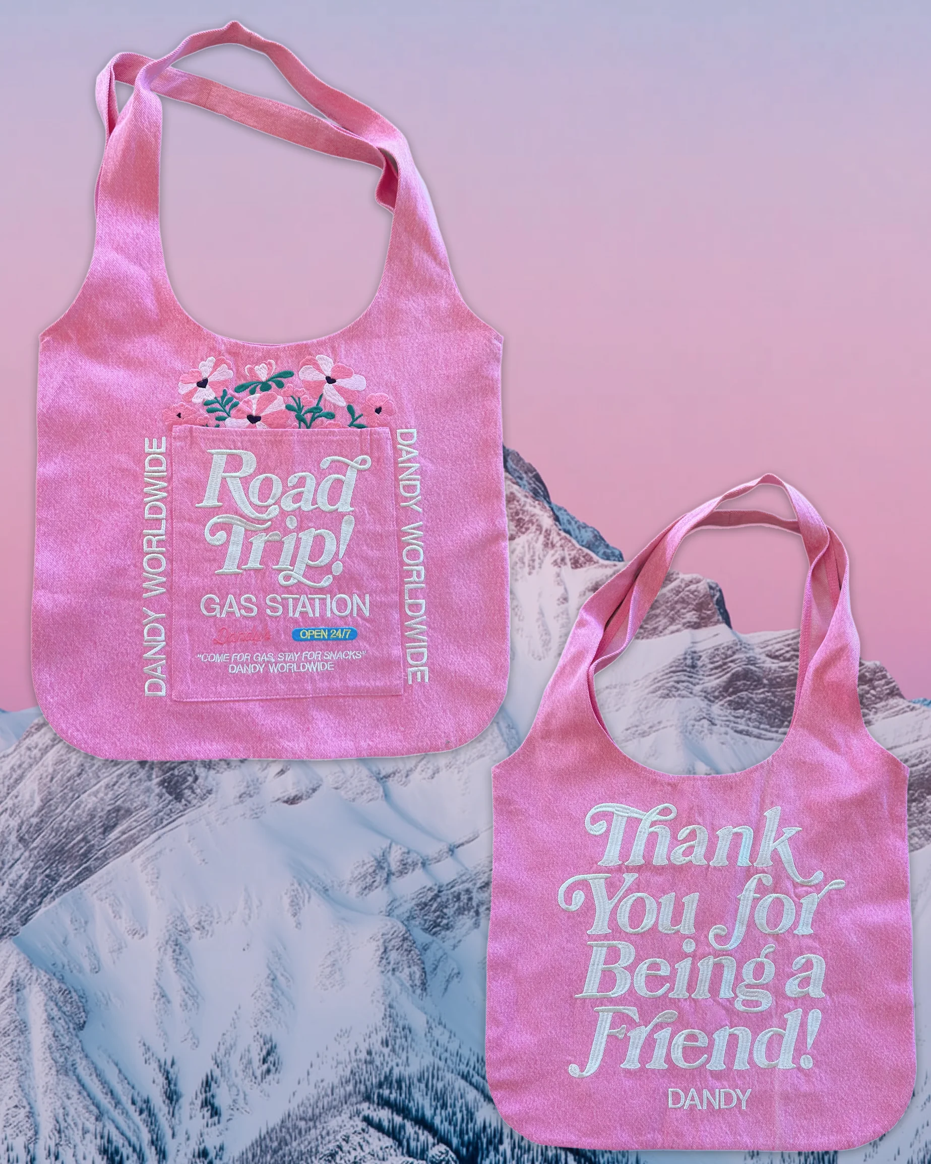 "Road Trip!" Double-Sided Tote Bag in Denim Pink